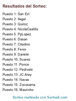 Lista de participantes: Dasan, pedroski, oswaldo, dariel, manuvasconez, san_evl, joacatar, mauro, Navas, Juansenavas, Ponce, Aray, Batallas, Suarez, Samaniego, Sebastian.
