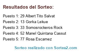 Lista de participantes: 1 Jose Santos, 2 Sergi Alonso Badia, 3 Aurora Pujol Sanz, 4 Daniel Ribés Juez, 5 Angel Rull, 6 Ylenia, 7 Carlos Domenech Goñi, 8 Darío Barroso Miranda, 9 Jairo Abella, 10 Eric Villagrasa, 11 Guillem Sant Martin, 12 Alejandro Encuentra, 13 Gorka Lekue, 14 Titatown Deriva, 15 Xavi Espi, 16 Ninfa del Bosc, 17 Asia Etc, 18 Andrea Lagunas, 19 Evita Sastre, 20 La Olla a Presión, 21 Christian Alberti Martinez, 22 Pau Lu Je, 23 Migui Cara Isla, 24 Aleix Vocal Saxphone, 25 Santiago Fortuny, 26 Albert Mercadé, 27 Letty Be, 28 Toni Ferré, 29 Albert Tito Salvat, 30 Gerard Albareda, 31 Josep Martí, 32 Diego Gonçalvez, 33 Somosrockeros Rock, 33 Eduard Cornet, 34 Madrona Llambrich, 35 Laura Candon Pizarro, 36 Pere Escoda Pentinat, 37 Marta Piqueras Garcia, 38 Marta Mirinda Asesina, 39 Ferran Ca Domingo, 40 Enric Lopez Oscariz, 41 Luis Pérez Contreras, 42 Eric Sin Kaducar, 43 Dídac Martínez Estrada, 44 Chema Perera Roca, 45 Víctor Martínez, 46 Maru Mangado, 47 Claudia Blanco Garcia, 48 Júlia Monclús Gairal, 49 Marina Targa Ramos, 50 Oriol Borrull Ávila, 51 Roser Vendrell, 52 Manel Quintana Cassut, 53 Arnau Vila Verdú, 54 Vianca Mejia Hidalgo, 55 Adria Cornet Calero, 56 Laura Muñoz, 57 Savitri Pàmies Gutiérrez, 58 Kinyo Tgn, 59 Instituto Nacional de Efikística, 60 Miguel Medrano, 61 Berto Belindo, 62 Festi K Karabanchel, 63 Marc Masvidal Codina, 64 Sandra Josjos, 65 Jordi Garcia Casas, 67 Ferran Emepé, 68 Lluis Cubells, 69 Franciso Rodriguez Gomez, 70 Cristina Alcorcón Borges, 71 Jordi Bloodsport, 72 Dani Porta, 73 Kim Torres, 74 Malanie Mf, 75 Luis Romero, 76 Aleix Vocal Saxphone, 77 Rosa Escamez, 78 Arnau Borràs Cros, 79 Lord Verde, 80 Jose Mario, 81 Alba Torres Rossell, 82 Eduard Masvidal Codina, 83 Paula Ovejanegra, 84 Maria Marta Antonia Sangonera, 85 Cristina Quero Ruiz, 86 Anna Esteban Benet, 87 La Japuta, 88 Sergi Alonso Badia, 89 Oriol Bonamusa, 90 Ull Boig, 91 Alex Torruella, 92 kiku miniyouth, 93 David Cáceres, 94 Jordi Estruch Samper, 95 Kim Karamawi, 96 Xavier Valverde Fernàndez, 97 Marc Miranda Bosch, 98 Joel Malvarez Gobau, 99 Marc Masvidal Codina, 100 Albert Iglesias, 101 Vergara Maika, 102 Pau Siscart Llort, 103 Sergio Martinez, 104 Julia Pascual Rissitus, 105 Ruben Pereira Estrems, 106 Adrián Ros Molero, 107 Lucas Basoalto, 108 Alberto Martinez Blanco, 109 Miguel González.