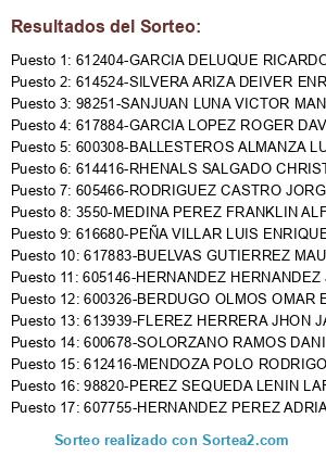 - Puesto 17: 607755-HERNANDEZ PEREZ ADRIAN JOSE CC.1102232763