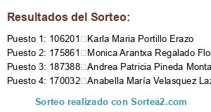- Puesto 1: 106201 Karla Maria Portillo Erazo