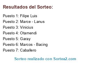 Lista de participantes: Marce - Lanus, Garay, Filipe Luis, Caballero, Otamendi, Vinicius, Marcos - Bacing.