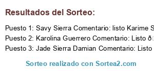 - Ganador 2: Karolina Guerrero Comentario: Listo 💖 Benjamin Espinoza Morales David Guerrero Mely Espinoza Morales