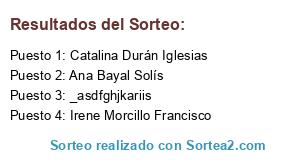 Lista de participantes: Belén Merchán, Javi Badillo , Soledad Borrella Espada, Mary Barrantes, Sara NevOrt, raquelpellon, _asdfghjkariis, Ana Nieves Campos, Alice Gould Alicia, Laura Lc, Merche Morgado Gonzalez, Melanie Cabrera Sanchez , sandra_clementev13, Nandi Rodriguez, Cristina Corchado , Banegas Jessica, Rosa Candy Peinado Caro , Ismael Corbacho Gomez, Anita Corchado, Ana Bayal Solís , Elsa Núñez Pérez , alcon93, macarena_mr1997 , anabayal, nuriflo_, Dani Melchor López, Catalina Durán Iglesias , Cris SP, Nerea Pajuelo Flores, Maribel Ciudad Jiménez, Maria Dominguez Rubio, Alba Maria Lancho Muñoz , Irene Morcillo Francisco, Guadalupe Barba Vázquez, dani_melow, Lydia Vivas, Juan Floriano Reviriego , Minerva Martín Moreno , adri_rubio13.