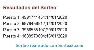 Sorteo tarjeta clubdelchollo Ene.2020. Sorteo certificado. Sorteo certificado