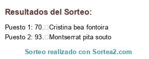 Lista de participantes: 1. Soy yo, 2. Chaskita bernarcer, 3. Marta Pérez Domínguez, 4. Herbosaude herbolario, 5. Carla Figuera romero, 6. Fanny Álvarez seijal, 7. Stela conde bouzas, 8. Lorena otero Cruz, 9. Ana romero, 10. Lorena serrapio tilve, 11. Paula casas aguiño, 12. Sara tuñez aguín, 13. Sandra otero campos, 14. Conchy pintos, 15. Ariadna morales Gómez, 16. Tamara maría miñana resa, 17. Silvia padin Domínguez, 18. Samira iglesias, 19. Susana Ferreira, 20. Jesuslaura Vázquez segade, 21. Patri Mascato cores, 22. Rúa martinez alvarez, 23. Ana gonzalez rodriguez, 24. Cio cherry choc, 25. Zulaika Alfonso Miguez, 26. Deboritas dulces, 27. Fanny Calviño, 28. Sabela domingo, 29. Yanett Álvarez, 30. Rocío miniño otero, 31. Closset grove, 32. Mila Domínguez, 33. Lucia dozo, 34. Marian Álvarez prieto, 35. Lucia López reboredo, 36. Groveal aluminio pvc, 37. María Adela conde otero, 38. Maika agrelo bea, 39. Ana prol González, 40. Noelia herves, 41. Susana señoran Rivas, 42. Silvia oubiña caneda, 43. Sol cascallar, 44. Silvia iglesias parada, 45. Andrea sanmartín, 46. Fuen ft, 47. Irimia mollinedo, 48. Susana porto labandeira, 49. Maribel Márquez calero, 50. Rita galiñanes bello, 51. Nerea Pérez, 52. Maite rodríguez López, 53. Santiago de diego González, 54. Marta Domínguez otero, 55. Paula casas aguiño, 56. Sonia Domínguez Gómez días, 57. Caroline aparisi novio, 58. Monserrat pita souto, 59. Carmen meis rial, 60. Eduardo torres, 61. Ana carina da Silva portela, 62. Noemi otero rey, 63. Almudena santos González, 64. Sara fontan Pérez, 65. Peluquería paca, 66. Marta serantes santos, 67. Ángela lago baulo, 68. Bibyana prieto, 69. Cristina Fernández Bernárdez, 70. Cristina bea fontoira, 71. Mina R. Casqueiro, 72. Tere orjeco, 73. O castro hotel restaurante, 74. Fabiola Pérez prieto, 75. Mely dorna, 76. Jorge conde mouriño, 77. Manu Varela, 78. Ana daren, 79. Reyes rodríguez Hernández, 80. Iris rodríguez gándara, 81. María romero, 82. Ange cofer, 83. Ana belén Méndez otero, 84. Marta valladares, 85. Rosalía valladares, 86. Iria Pérez González, 87. Vero pazos Martínez, 88. Nuria villalón costa, 89. Sandra pena otero, 90. Demelza picón, 91. Laura Estefanía Fernández tejeiro, 92. Sonia picón González, 93. Montserrat pita souto, 94. Irene rodríguez, 95. Mayra ubeira González, 96. Laura otero friaza, 97. Belinda Fernández, 98. Sol cascallar, 99. Lorena otero cruz, 100. María rianxeira no grove, 101. Zapy zapatería infantil, 102. Jorge Martínez Alfonso, 103. Mely dorna, 104. Sonia Domínguez Gómez Díaz, 105. Rocio Fernández, 106. Jaime Álvarez, 107. Elena Triñanes Mascato, 108. Enredada entre hilos, 109. Yamile caneda.