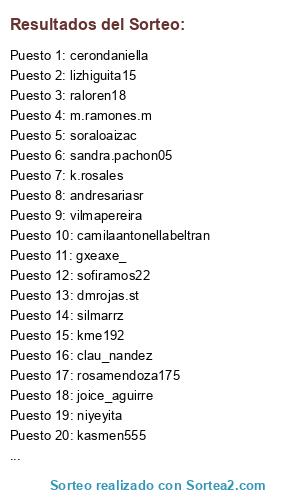 Lista de participantes: elpapademariajose416, elpapademariajose416, andres_ordonez_g, juanguerra2609, andres_ordonez_g, zoraya_1992, andres_ordonez_g, andres_ordonez_g, cami_avila24, cami_avila24, the.chily, the.chily, dayanne_gonzalez30, dayanne_gonzalez30, pelirrojo00, dianalamusbeauty, andresg984, andresg984, andresg984, ginapao_7, andresromero_0317, dianitaanz, juanguerra2609, andres_ordonez_g, juanguerra2609, juanguerra2609, juanguerra2609, sandra.pachon05, sandra.pachon05, santiago_camelo_, andresariasr, santiago_camelo_, mairita_linares, santiago_camelo_, rodrii_vergara, rodrii_vergara, rodrii_vergara, mairita_linares, mairita_linares, santiago_camelo_, mairita_linares, mairita_linares, andresariasr, andresariasr, santiago_camelo_, andresariasr, andresariasr, josepacb, juanitarojascontreras, juanitarojascontreras, pipe_af7, clau_nandez, clau_nandez, clau_nandez, clau_nandez, clau_nandez, naranjoadrianita, naranjoadrianita, naranjoadrianita, naranjoadrianita, silmarrz, silmarrz, majohernandezromero, silmarrz, majohernandezromero, silmarrz, majohernandezromero, andreaaa_arias, chistobarragan, _elu0194, m.ramones.m, _elu0194, _elu0194, sollanllyquintero, sollanllyquintero, m.ramones.m, m.ramones.m, _elu0194, m.ramones.m, johan_viqbet, niyeyita, kazmen555, kamilo__chaparro, johannaaballesteros, milagrosreyes9947, karenlamprea, paolayisedrueda, luchitabella, andecamr2015, gabriela_antequera, claudiasarmiento24, johan_viqbet, taguz_17, johan_viqbet, m.ramones.m, johan_viqbet, claudiasarmiento24, lauraxgarzon, lamarore, tabataflorezlopez, _holjulian, taguz_17, johan_viqbet, taguz_17, taguz_17, heidylargo, ktherine_benitez, ktherine_benitez, ficoquintero, giovanotti_lg, camilaantonellabeltran, ficoquintero, sebash444, camilaantonellabeltran, ficoquintero, camilaantonellabeltran, giovanotti_lg, jackelineb10, marcela18atv, jeffer_mendieta, milagrosreyes9947, grissreye, giovanotti_lg, mrgbteamo, giovanotti_lg, ficoquintero, giovanotti_lg, camilaantonellabeltran, ggaabbyy.3w, fkchacin, fkchacin, fkchacin, fkchacin, fkchacin, daniella4030, stevenrenteria_l, yosimarfernandezh, carito.saritajd, leidydigr, leidydigr, leidydigr, emilygutierrez_31, yeisonentucraneo, morenaaaa_11, morenaaaa_11, morenaaaa_11, monik_luq, chorky.a, stuntcrash_557, stuntcrash_557, stuntcrash_557, stuntcrash_557, stuntcrash_557, alejavillarreal.av, sexiadrianarios, pradamafe, pradamafe, pradamafe, pradamafe, pradamafe, yo.juancho, jonathanbeaumont2112, sebas.monroy3, yuliethpiza, itsandysanta, s_a__n_t_i, ingridgarcia_guerra, manuelfajardo12, ingridgarcia_guerra, silmarrz, silmarrz, silmarrz, silmarrz, silmarrz, joice_aguirre, joice_aguirre, joice_aguirre, joice_aguirre, joice_aguirre, juanjoseromero994, caperadennys, eliana1975car, laddyy0909, johan_balcazar, andresmora0208, andresmora0208, jhonvaron_5, mariangelicaor, monik_luq, alepaez98, dianisrc4, adrii.ramirez4, lalitafairy, saiandi420, mottlif, yurivega07, manny_tiago, yulisa2811, sebas_monroy3, nata_tuta, jamilton_goez, laupank, camilaab_, valentiina_cespedes, dianafarort, lopezcastanedaleonardo, fernandoalmario, juana_pao, juana_pao, chorky.a, camilaab_, _paolagomez17, unajuliju, _cantillo_, mcom.99, ahernandez1199, gaby_rincon08, jacktomus, mafeeroman, nanitarr, k.rosales, k.rosales, k.rosales, k.rosales, k.rosales, the.chyli, ed_palacios12, caroline.palmero, aniuska0531, juancabejarano, taniakvalenciad, dmrojas.st, dmrojas.st, dmrojas.st, gisell_9810, gisell_9810, sofiramos22, gisell_9810, gisell_9810, jazmin_rockerita, gaby_rincon08, dzdzmery, dzdzmery, dzdzmery, dzdzmery, kme192, kme192, jessik_grisales, kme192, matheo_gomez_, jessik_grisales, gisell_9810, jessik_grisales, kme192, jessik_grisales, yeris_21, sofiramos22, jessik_grisales, soraloaizac, chalored, chalored, andresariasr, xiomaranaranjodiaz, xiomaranaranjodiaz, xiomaranaranjodiaz, kharladgf, kharladgf, kharladgf, jenifer_robless, jenifer_robless, jenifer_robless, jenifer_robless, jenifer_robless, leidydigr, leidydigr, imepereira, imepereira, unregalodedios, rosaramos1991, rosaramos1991, ir2pe, vilmapereira, vilmapereira, karen_luti, karen_luti, karen_luti, karen_luti, karen_luti, luisasapene, rosamendoza175, raloren18, raloren18, raloren18, raloren18, eduard.criollo, aida_prada, aida_prada, aida_prada, aida_prada, aida_prada, bautista.7, jessik_grisales, angeacostat, angeacostat, angeacostat, kndy_rodriguez, perafan18, monik_luq, jhonvaron_5, lizhiguita15, nelsyrrr, dianisrc4, adrii.ramirez4, mottlif, jamilton_goez, diego.achury, pradamafe, pradamafe, pradamafe, pradamafe, pradamafe, jonathanbeaumont2112, sebas.monroy3, nata_tuta, nata_tuta, dj.j_camargo, sarta112, kareneramireze, cami_avila24, valentiina_cespedes, dianafarort, karinepaz09, _paolagomez17, caroline.palmero, emilygutierrez_31, emilygutierrez_31, emilygutierrez_31, josepacb, jennirdrgz, jennirdrgz, jennirdrgz, jennirdrgz, jennirdrgz, jenncely, jenncely, jenncely, cerondaniella, cerondaniella, cerondaniella, cerondaniella, cerondaniella, paola_cardena22, luzjiar, adrii.ramirez4, kareneramireze, the.chyli, dayanne_gonzalez30, reneneirao, jes.bp, pablino15, mafe_guinand, elyescorcia2291, elyescorcia2291, ale_mamade3, ale_mamade3, ale_mamade3, ale_mamade3, christobarragan, gxeaxe_, niyeyita, kasmen555, kasmen555, kasmen555, kasmen555, kasmen555, johanitag15, johanitag15, johanitag15, johanitag15, dzdzmery, dzdzmery, kme192, jackelineb10, jos_confi, haiina.