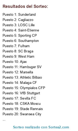Lista de participantes: Bor. M’gladbach, Hambuger SV, Hannover 96, VfB Stuttgart, Athletic Bilbao, Malaga CF, Sevilla FC, LOSC Lille, Marsella, Olympique Lyon, Saint-Etienne, Stade Rennais, Ajax, PSV, Astons Villa, Fulham, Norwich City, Southampton, Stoke City, Sunderland, Swansea City, West Ham, Cagliazzo, Parma, Udinese, SC Braga, Sporting CP, FC Shakhtar, Olympialos CFP, CSKA Moscu.