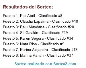 Lista de participantes: Tati Taa - Clasificado #4, Pamela Galvan - Clasificado #5, Marü Jaworski - Clasificado #6, Revendedora Productos Avon-Clasif. #7, Pipi Abril - Clasificado #8, Nata Rios - Clasificado #9, Claudia Lapalma - Clasificado #10, Cyntia Céspedes - Clasificado #11, Karina Alejandra - Clasificado #13, Grisel Noe - Clasificado #14, Paola Beltrami - Clasificado #16, Silvana Cabrera - Clasificado #17, Sil Gavilán - Clasificado #19, Belu Maydana - Clasificado #20, Elizabeth Boero - Clasificado #21, Debbie Galeano - Clasificado #22, Roxy Castillo - Clasificado #23, Maru Colombo - Clasificado #24, Lucia Acosta - Clasificado #26, Carla Iniguez - Clasificado #27, Brenda Burtre - Clasificado #29, Nam Caradonna - Clasificado #32, Rosa Lazzaroni - Clasificado #33, Karen Segura - Clasificado #34, Elisabet Manterola - Clasificado #35, Mariano Maciel - Clasificado #36, Marina Pantin - Clasificado #37.