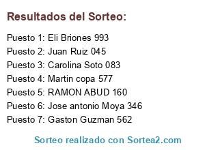 Resultados del sorteo: