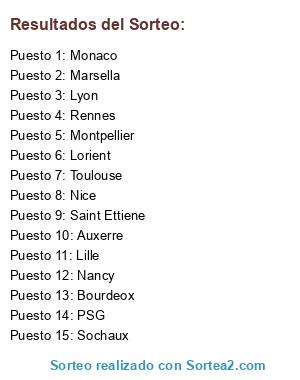 Lista de participantes: Saint Ettiene, Auxerre, Bourdeox, Lorient, Lille, Lyon, Marsella, Montpellier, Monaco, Nancy, Nice, PSG, Sochaux, Rennes, Toulouse.