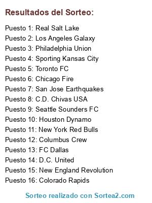 Lista de participantes: Chicago Fire, Columbus Crew, D.C. United, New England Revolution, New York Red Bulls, Philadelphia Union, Sporting Kansas City, Toronto FC, C.D. Chivas USA, Colorado Rapids, FC Dallas, Houston Dynamo, Los Angeles Galaxy, Real Salt Lake, San Jose Earthquakes, Seattle Sounders FC.
