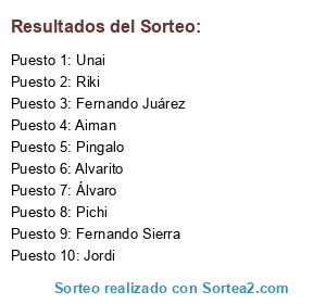 Lista de participantes: Fernando Juárez, Aiman, Pingalo, Alvarito, Fernando Sierra, Unai, Jordi, Riki, Pichi, Álvaro.