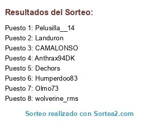 Lista de participantes: wolverine_rms, Olmo73, Anthrax94DK, Landuron, Dechors, Humperdoo83, Pelusilla__14, CAMALONSO.