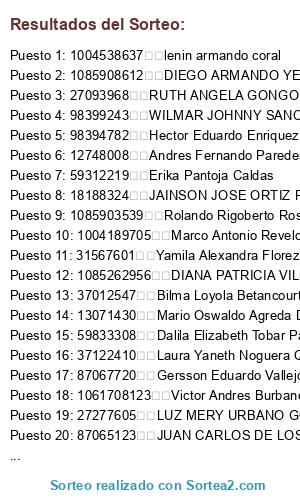 Resultados del sorteo: