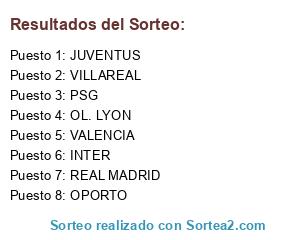 Lista de participantes: JUVENTUS, PSG, VALENCIA, REAL MADRID, OL. LYON, INTER, OPORTO, VILLAREAL.