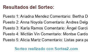 - Ganador 1: Ariadna Mendez Comentario: Bertha De Jesus a ver si por fin gano algo en esta vida jaja