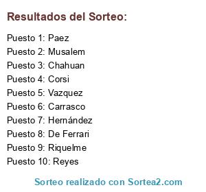 Resultados del sorteo: