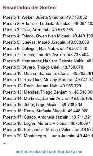 - Puesto 15: Jonte,Tiago Misael 48.738.534