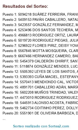 - Puesto 42: 5243675 DERZE HERNÁNDEZ, ALISON KARINA
