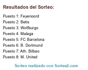 Lista de participantes: Ath. Bilbao, FC Barcelona, Wolfburgo, M. United, Feyenoord, Betis, B. Dortmund, Malaga.