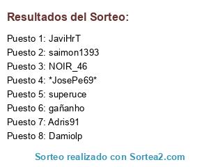 Lista de participantes: carloxdim1, JaviHrT, Adris91, NOIR_46, saimon1393, oskarmp, superuce, gañanho, Damiolp, Salidinas, *JosePe69*.