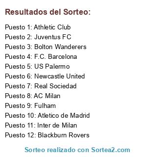 Lista de participantes: F.C. Barcelona, Atletico de Madrid, Real Sociedad, Athletic Club, Blackburn Rovers, Newcastle United, Fulham, Bolton Wanderers, AC Milan, Juventus FC, US Palermo, Inter de Milan.