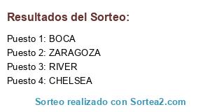 Lista de participantes: CHELSEA, RIVER, BOCA, ZARAGOZA.
