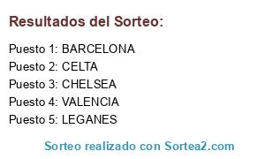 Lista de participantes: CHELSEA, LEGANES, VALENCIA, BARCELONA, CELTA.