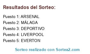 Lista de participantes: EVERTON, MÁLAGA, LIVERPOOL, ARSENAL, DEPORTIVO.