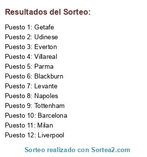 Lista de participantes: Barcelona, Levante, Villareal, Getafe, Everton, Blackburn, Liverpool, Tottenham, Udinese, Napoles, Milan, Parma.