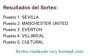 Lista de participantes: SEVILLA, MANCHESTER UNITED, EVERTON, VILLAREAL, CULTURAL.
