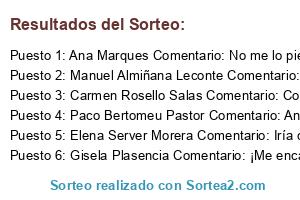 - Ganador 5: Elena Server Morera Comentario: Iría con mi hija, que seguro que le encanta!!!