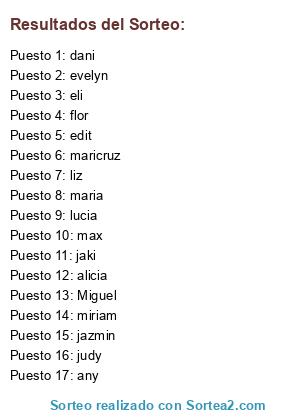 Resultados del sorteo:
