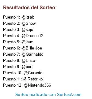 Lista de participantes: @Billie Joe, @Enzo, @Curanto, @itam, @Garinaldo, @itsab, @Dracou12, @Snow, @port, @sejo, @Nintendo366, @Retoriko.
