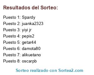 Lista de participantes: damota80, juanka2323, yiyi jr, alikuetano, oscarpb, getar44, pepis2, Spardy.