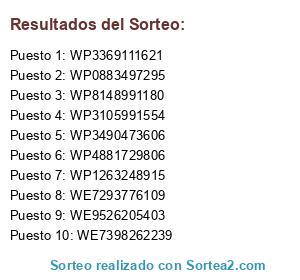 Resultados del sorteo: