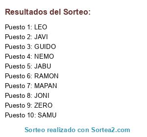 Resultados del sorteo: