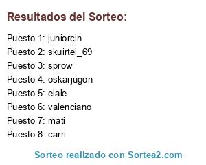 Lista de participantes: sprow, elale, mati, oskarjugon, valenciano, carri, juniorcin, skuirtel_69.