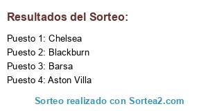 Lista de participantes: Blackburn, Barsa, Chelsea, Aston Villa.