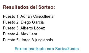 Lista de participantes: Grabiel de la Cruz, Francisco José Fernandez, Alvaro Garcia, Ernesto Martin, Alfonso Solis, Sergio Cortinas, Adrian Cosculluela, Alex Lara, Bruno Castañón, Juli an fuxe, Diego Garcia, Cristian Tavira, Juan Carlos Sobrino, Miguel Semik, Adrian Maldonado, Fernando Martin, Coke del olmo, Jonathan Quero, Tonextebet, Pedro Alberto, Alberto Merino, Granguru, Sergio Ferron, Basilio Rosales, Bárbara cascón, Jorge Gonzalez, Jose Serrano, Miguel Angel, José Maria Jerónimo, Alberto López, Juancar, JAVIER Javirius, María Heras, J.Latorre, manuelmolina, Ivan Cortes, Alberto Vadillo, Fco Javier, Lorenzo Corrochano, Ramón Garcia, Miguel Angel Del Pozo, David Hernández, Jesus Negrete, Lluis J Suarez, Jorge A junglapolo.