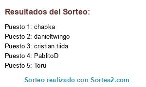 Lista de participantes: D. Fernando, edusui, pabreu, chapka, PablitoD, Toru, fede, danieltwingo, gavicon, cristian tiida, Lucas.