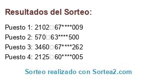 Este sorteo ha sido certificado por Sortea2. Sortea2 garantiza que: