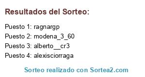 Lista de participantes: aldovv21, chupavidre, napsterwey, tximisteh, doux_beats, igna8813, blurredstudio, pixel_sp, jserraa, buba0212, 19diegoortiz, gorkimedes, rmassot9, xkloko, miticoja, mrrobles21, zzr4dexzz, twinki1, sudsierjuany, jonay72, oscar_ruiz_gt, simgramer, spaingamer78, simnieva, forzalonso14, nexumdorf, piqueras20, rastaracing, danivalalba73, jesusmglezm, dario110509, jomakes, m93t, amotoremoto, lt_spirit, nando_menendez, juanvlc73, xpoa, ayshel13, scout_sf, iago_fernandez93, pilotoirreal, copito_80, kad2k, sebasvilla31, robertoglezf1, ocapitan659, eln0tah, brasamanx, marcos_r27, jaimers2, sxr_tizicap, israelrojasguerrero, dj_pjr, easycore_r3veng3, snakeale, blackburn402, supertoni11, barrriii, codazos, pablo_viro, ekarmak, luckyluuke_, xevihalf, barrio2302, chonabis, medjoc, maltrox__vk, ancamon, malossir46, mesmayao, mirmidonsg, fabi_742, thespace27, sakumogenji, darkingenier, igoracing, heikki360es, yonoqueria, varuco, xavi217217, alexmaaaaaaan, joeintranslation, djhanstv, quemagalletas, joninoyeah, titovelcro, biggone, miguelchillon, xxdasterzz, ppapig1, mrfarza, alexrubioma, mario_fernadez77, dajmeisterr, gipu01, m0n1n, j_calvicius, roberto_ml12, sirn4sty, r7obert4, hms_duran_8, javi_91b, dinadalu, vrg_shotes10, sergill94, thedriver28aitor, 13rachu, flipotungax, zoupapepe, nosfergz, doka_7, pardotwch, salvadorsalado, taquicardio01, destroya_11, rubiluu, luis_cft, edgardelso, gorreto84, rober_racer, titosito, mag1k_33, trasmaniac, mxdamage_es, braskagdt, abrazarboles, tito7r, operador__1, 3ss3nt14l, modena_3_60, jameco78, bufferito, silb0u, diegoza2002, agius14, luckkario, lindberghlegacy, silvestre007, 69rocks69, ayan_19, javi_galacho, guiem184, daniiruiz098, ngryyellow, danimas, reincidente71, romantic0n, coldebruselas, narf010, javisaltabrinca, m_rodribo, helmuthsc2, alvaroball, escapeartesano, smatbau, tuamig0informatico, guillegrandprix, jotasr_, honrumad, nuevoburnout, mejutuelo, gt7enjoyer, cirolopezsantana83, pitergutierrez, sergiiogmzz01, setuquidelmario, lim3ero360, xaer0cs, juansegil, davidmorella, lordhavels, fabregapitstop, biodieselyrepro, tabaresk, hakioo7, roquegarcia90, holatal_mc, cuevasdrc, wildbaralloco, palote, conter30, denoro83, artelow, pyros____, asturfer, dybbuk_, carmona91, yimito_, esloooz, jaimefuentes_, ovadelova, tiverius1911, jaimem29, trhillst1, lillo_1_, hawkmj, mmaller, victorfraile24, kevinleonc, sprubns, trastito2es, argueso1978, roca_d2, fornes20, rivenmoonlight, mrm0ntiel, enord14, j_romeo_g, rubendp08, verdejita7, sis00sis, senentowers, neivan808, ivosh_k, abengoetxea23, alexmorenoo__, kriticbilbo, ivan_rg13, alberto_arrabal, mryeti99, joannuso74, kevprox_, snadker, megadethh, simracermalo, soap097, neinhownz, romanblanco34, potasioneitor19, jcalaverars, lobe_11, danifelson147, gaste7, albertrpm_tv, sisco555, tantotolino, bandalodj, follatudios, donfrancis23, josearranz, josinho_27, juanmoreta, pedror_t, wilberth150, guinimon, rotondax34, hilariofrrplay, alconmt, pablo_bosca, durumdonner, marotuss, alfonso_ir, dani_suso, tanakamedina, maxifp87, goroo03, daniofenomeno, evillince, lpintoracing1979, axblackwolf, escuderiers, nibob, mgbrunal, lib2k, marnick75, salvabad, ilpetrovio, m0kers, didaccortes, gabi_montoro, waveador, cjimenezd, joselopezsetups, mariouceda19, luissan5, rictzar, davidrebollo92, franvmm, jose18398, marktrog_, pantanis_club, alexrayman25, imartin000, d0bl3_r, emiscooot004, amaikvives, albertocrj, ronco_kalo, joselt61, davidp77, carloscarballes, tato_f1, escritrol1, skytxatxi, vroguez, galaxxy1247, celikenyo, zom989, eqt10, eecarres, danielpilloxz, mongui93, robert_bermejo, diegotroitas, buhor_00, alberto__cr3, pain_sof, pepo_222, ferran122, guszolano, anchoneco, pdaxon, element__75, damianharryson, mayal21, justsayk, azulanubis_45, moizar, davisinhooo10, kampos46, airon6, jucaini, marcmf14, frantrek23, eylend4, pablinski79, darwinnite, faustino_iracer, jr25may, tavig_, pollolenteja, kirii23, viso91, lupi89, mataesp, chusoharoprime, tihaki, imjoorge, kletus91ac, sergiosoria81, cabesssa, morenoraven, pvfm2001, antoniopin, jorsotmar, viermartins, gatocat11, armada992, kiastolit, reyessssssssss, bonzai_raver, crisgsxr, malolo666, pozomairenero, pach1z1n, danies90, riq1982, xxxkarasu, xmordr3dx, luks_morato, jeankiorendain, s0nypawn, mmascaro74, mayestick65, pablo_argesp, alejandroid80, heymzzz, olbhap, fernandexjuy, 0mancha0, sergioba, traspinedo10, elantro, jose_a_roque, b0rregus, pepepioli, nix_megajoelchuyt, takelberri40, gorki_11_, borjasanta, larsson_united, tkarlos77, iagotubio3, vilaplana88, chinchilla83, asanz95, bocataman00, r2d2_79, casfpv, linksys19, mastropiero75, missingfotografia, xdragner, llucroig96, carlos_evr, leoloseat127, pablosky44444, supermon48, carbutron67, charlyonekenoby, 0nain, xlengz, mikeuc777, alex_bojovnik, unnefer11, 61luis, alb3c3, el_cubero_elegante, pinkhorse_666, marcosss_17_, 10pedrito10, drakcod, iviraidon, hristo_stoichkov, davile21, javi_delg360, magicalonso, joselacalle, markuswelvis, carlos_kapazao, xfrago93x, eltiodelosvermus, toclax, marjjin, justtmike94, jbull3x, javierromerotv, nicolas_m_m, yaizaportillo23, calbertora, gerichus, rhaventt, jselasourense, jairowolfi, bastoncillodeloido, luarfema, gustavo_ansotegui, absolut_vod_2019, chechootv, arrope_es, kev350zz, antiim, nonoacr, raw_lubeira, edugh98, madcharly, jcabrerapls, chirimad, rubenmorcab, triki548, monk0889, yioigo, kiratxi, ifreezer91, juanjo_mz, oscarsoltero22, dacobo3, albertpratsa, wizoluko, bimbaso77, julihulk11, gabar92, mavsito, kevinbarrau, ragnargp, fjtena, takelberri39, kinos7, xineda, ilmaspe93, octane_sp, emimora11, skakys, mrphoskitos, marjer_, juancrts4, cascoporro87, mr_mazza, k0v0k, 10_cici_10, rub_rubio, franpr13, toniophs, xxthorxx, varomrn, alexroy84, pablom4t4, duckiland2, giovannilopez_s, llastrin_kr2, juanchv1, dontrauman, benestan2, ramiseu, davidd_r6, jaimexry, rockacid1, martinezmsergio, pepemarti23, pelikanosss, halkon81, asuarez0612, jgarre88, perlote19, juanillogz, xab1er, diego_pesado,