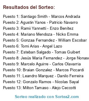- Puesto 1: Santiago Smith - Marcos Andrada