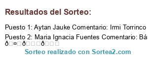 - Ganador 2: Maria Ignacia Fuentes Comentario: Bárbara Camila Ojalá ganemos!! 🤗💃💃