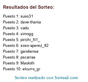Lista de participantes: vadu, ximogg, Maoloth, pscarras, pirichi_N1_, elcurro_gr, gandiense, dave-thania, suso31, xoxo-aperez_82.