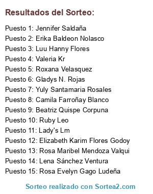 Lista de participantes: Lena Sánchez Ventura, Erika Baldeon Nolasco, Ruby Leo, Valeria Kr, Camila Farroñay Blanco, Elizabeth Karim Flores Godoy, Gladys N. Rojas, Luu Hanny Flores, Rosa Evelyn Gago Ludeña, Beatriz Ccamac Molina, Yuly Santamaria Rosales, Rosa Maribel Mendoza Valqui, Lady's Lm, Beatriz Quispe Corpuna, Jennifer Saldaña, Roxany Mozo, Roxana Velasquez.