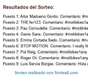 - Ganador 2: THE fer123. Comentario: #motibikes1any
