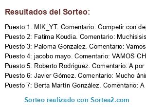 Lista de participantes: Sorteo realizado entre 12 comentarios..