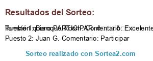 Lista de participantes: Sorteo realizado entre 594 comentarios..